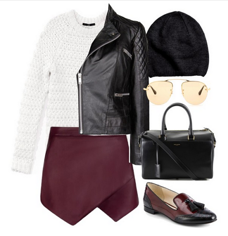 — если за окном прохладно к лоферам подойдут длинный свитшот или пальто, в сочетании с шарфом снуд и однотонными плотными колготами с рисунком.