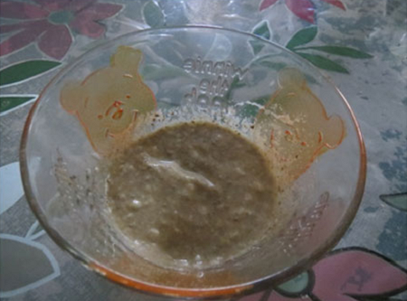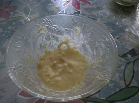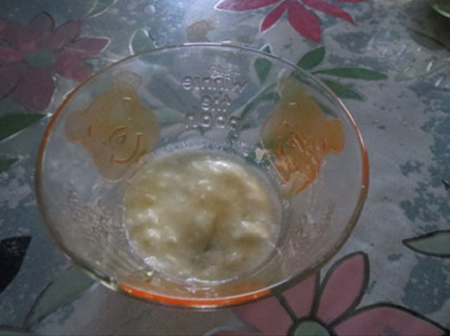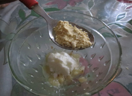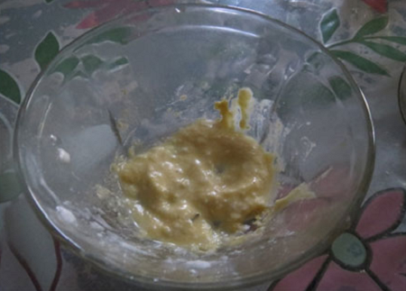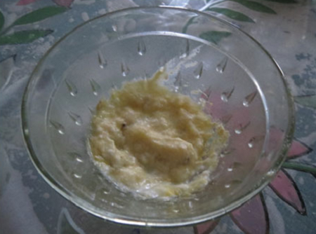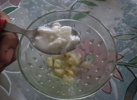 Возьмите половину спелого банана и хорошо разомните его вилкой, так чтобы не осталось комков.